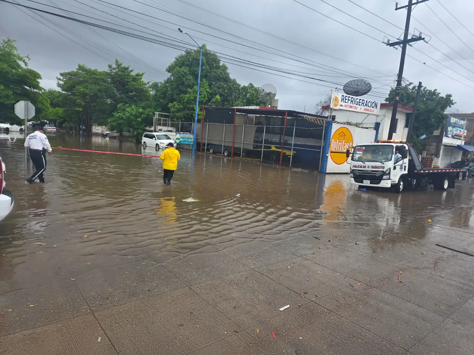 Los Mochis, Sinaloa._ Por las lluvias que se an registrado en el municipio de Ahome durante este viernes los agentes de la Dirección de Tránsito Municipal cerraron varias vialidades debido a encharcamientos causados por las lluvias.