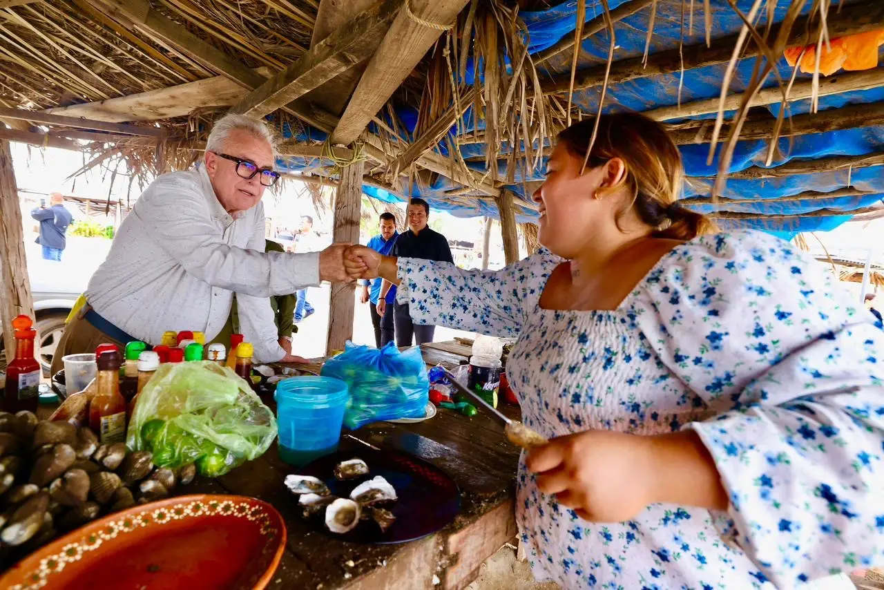 Posteriormente recorrió la zona restaurantera de Boca del Río, donde además de saludar a los vecinos y comensales, hizo el compromiso para que, antes de que termine la semana, en coordinación con las secretarías de Administración y Finanzas, Economía y el Ayuntamiento municipal, se entreguen apoyos a los restauranteros, a fin de amortiguar afectaciones por la construcción del puente.